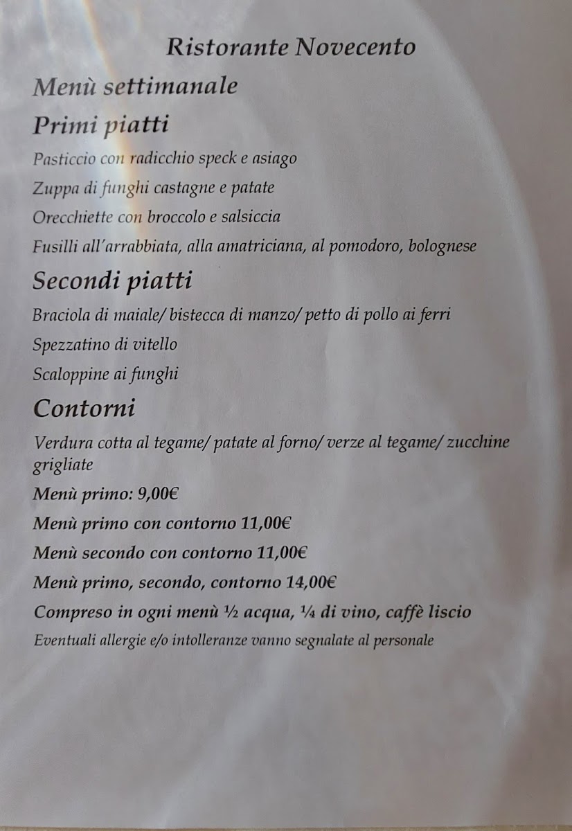 Ristorante Novecento Menu